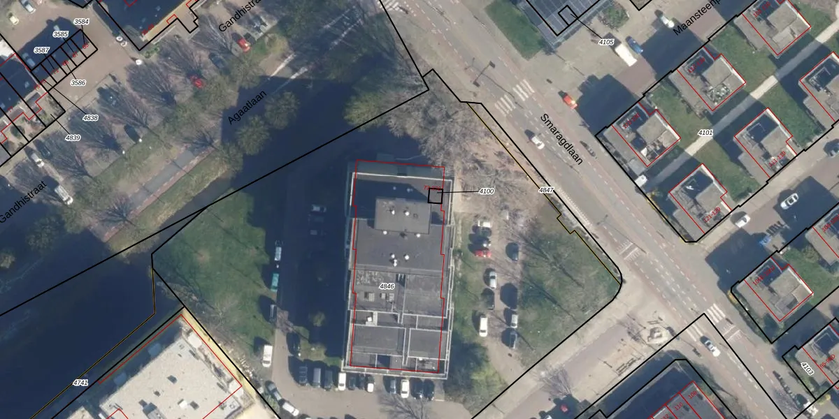 Het perceel waarop Smaragdlaan 148 staat heeft een oppervlakte van 6036 m². Dit is een zeer groot perceel. De perceeloppervlakte wordt geregistreerd door het Kadaster. Gedetailleerde informatie over de maten van dit perceel kunt u vinden in het rapport Kadastrale kaart met maatvoering van Smaragdlaan 148.
