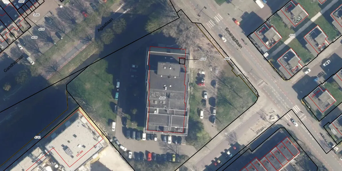 Het perceel waarop Smaragdlaan 176 staat heeft een oppervlakte van 6036 m². Dit is een zeer groot perceel. De perceeloppervlakte wordt geregistreerd door het Kadaster. Gedetailleerde informatie over de maten van dit perceel kunt u vinden in het rapport Kadastrale kaart met maatvoering van Smaragdlaan 176.
