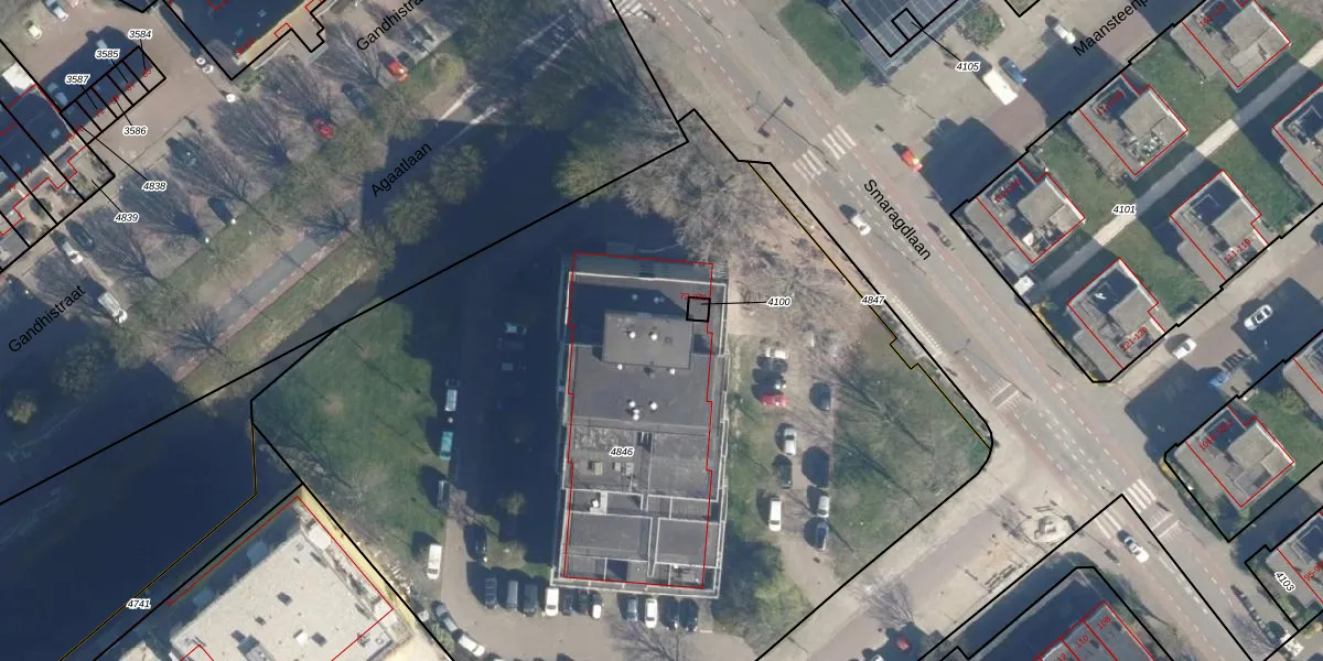 Het perceel waarop Smaragdlaan 184 staat heeft een oppervlakte van 6036 m². Dit is een zeer groot perceel. De perceeloppervlakte wordt geregistreerd door het Kadaster. Gedetailleerde informatie over de maten van dit perceel kunt u vinden in het rapport Kadastrale kaart met maatvoering van Smaragdlaan 184.