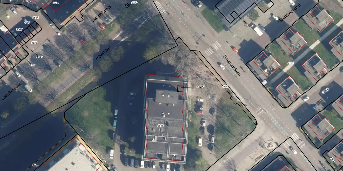 Het perceel waarop Smaragdlaan 188 staat heeft een oppervlakte van 6036 m². Dit is een zeer groot perceel. De perceeloppervlakte wordt geregistreerd door het Kadaster. Gedetailleerde informatie over de maten van dit perceel kunt u vinden in het rapport Kadastrale kaart met maatvoering van Smaragdlaan 188.