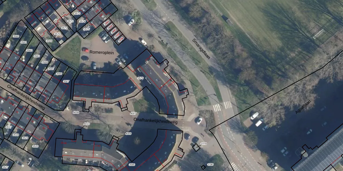 Het perceel waarop Smaragdlaan 284 staat heeft een oppervlakte van 1321 m². Dit is een zeer groot perceel. De perceeloppervlakte wordt geregistreerd door het Kadaster. Gedetailleerde informatie over de maten van dit perceel kunt u vinden in het rapport Kadastrale kaart met maatvoering van Smaragdlaan 284.