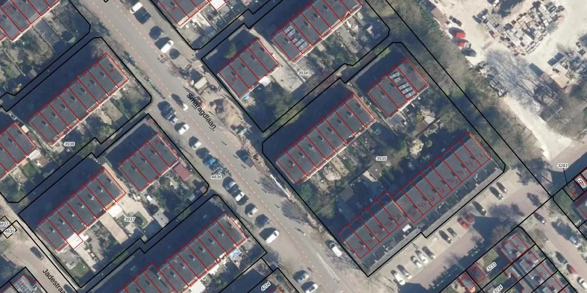Het perceel waarop Smaragdlaan 45 staat heeft een oppervlakte van 3540 m². Dit is een zeer groot perceel. De perceeloppervlakte wordt geregistreerd door het Kadaster. Gedetailleerde informatie over de maten van dit perceel kunt u vinden in het rapport Kadastrale kaart met maatvoering van Smaragdlaan 45.