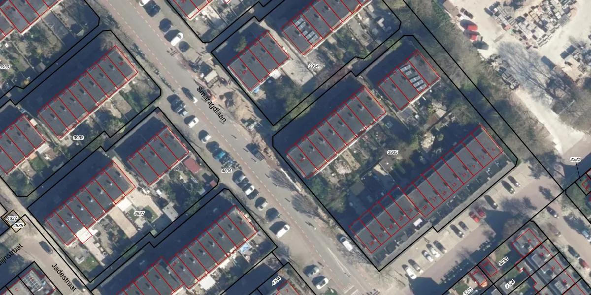 Het perceel waarop Smaragdlaan 47 staat heeft een oppervlakte van 3540 m². Dit is een zeer groot perceel. De perceeloppervlakte wordt geregistreerd door het Kadaster. Gedetailleerde informatie over de maten van dit perceel kunt u vinden in het rapport Kadastrale kaart met maatvoering van Smaragdlaan 47.