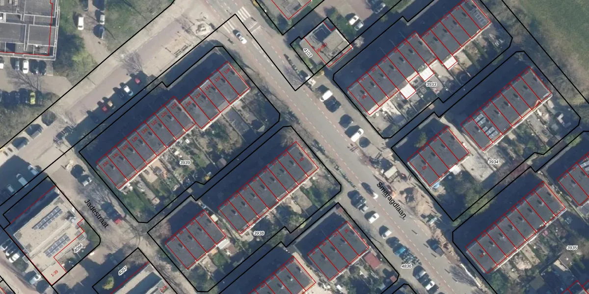 Smaragdlaan 48 is gelegen op kadastraal perceel LDN01X3938. Deze kadastrale aanduiding is uniek en wordt gebruikt door het Kadaster om eigendomsrechten en andere zakelijke rechten vast te leggen. Het perceel maakt onderdeel uit van de kadastrale gemeente Leiden.