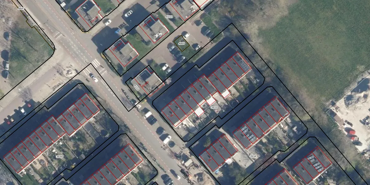 Smaragdlaan 87 is gelegen op kadastraal perceel LDN01X3933. Deze kadastrale aanduiding is uniek en wordt gebruikt door het Kadaster om eigendomsrechten en andere zakelijke rechten vast te leggen. Het perceel maakt onderdeel uit van de kadastrale gemeente Leiden.