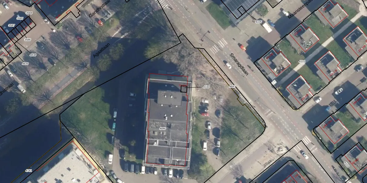 Het perceel waarop Smaragdlaan 98 staat heeft een oppervlakte van 11 m². Dit is een klein perceel. De perceeloppervlakte wordt geregistreerd door het Kadaster. Gedetailleerde informatie over de maten van dit perceel kunt u vinden in het rapport Kadastrale kaart met maatvoering van Smaragdlaan 98.