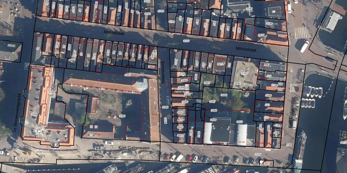 Het perceel waarop Smidssteeg 13 staat heeft een oppervlakte van 63 m². Dit is een klein perceel. De perceeloppervlakte wordt geregistreerd door het Kadaster. Gedetailleerde informatie over de maten van dit perceel kunt u vinden in het rapport Kadastrale kaart met maatvoering van Smidssteeg 13.