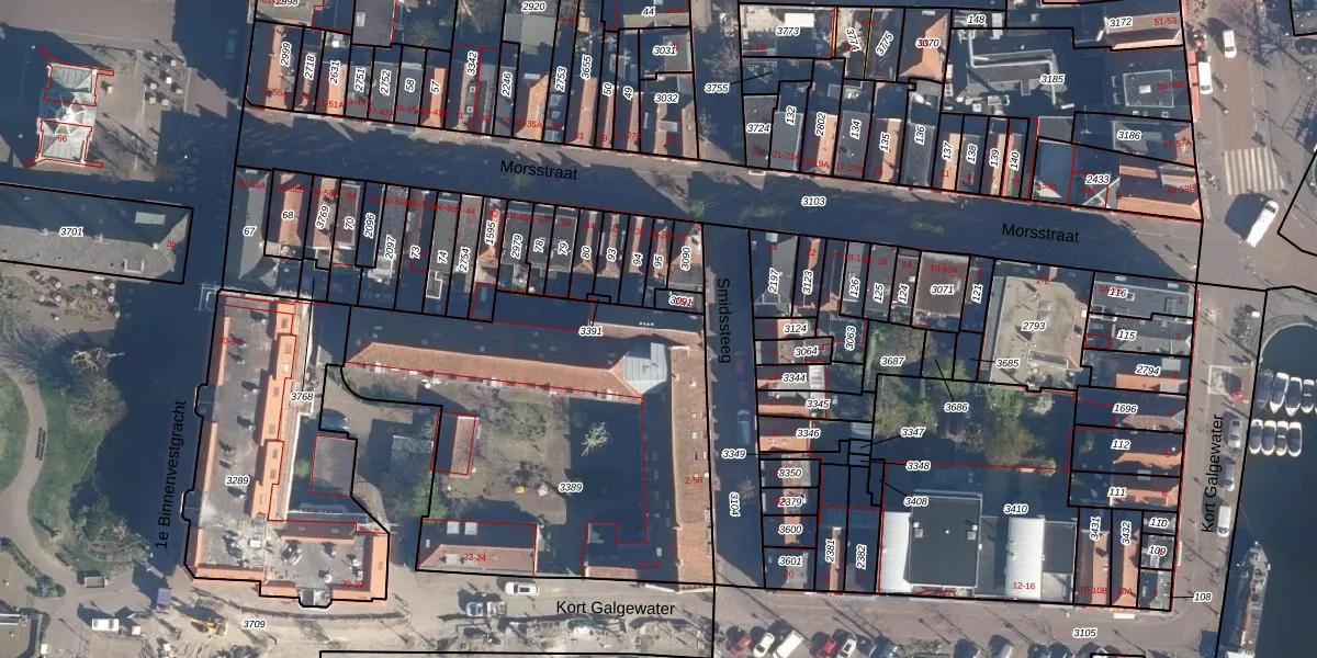 Het perceel waarop het adres ligt is LDN01-B-3389. De afkorting 'LDN01' staat voor kadastrale gemeente Leiden. De oppervlakte van het perceel is 1501 m². Dat is groter dan gemiddeld in Leiden, waar de gemiddelde perceeloppervlakte op 703,99 m² ligt. Het grootste perceel in de kadastrale gemeente is 51,8 ha. Het kleinste perceel heeft een oppervlakte van 0 m². Op het perceel zijn 33 adressen aanwezig. De laatste wijziging in het de Basisregistratie Kadaster (BRK) was op 20-07-1999.