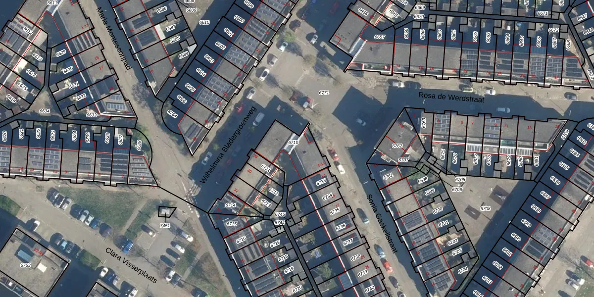 Het adres ligt op het perceel LDN01-W-6710, dat zich in de kadastrale gemeente Leiden bevindt. Het perceel is 300 m² groot. Dat is kleiner dan de gemiddelde perceeloppervlakte in Leiden, dat op 704,01 m² ligt. De grootste perceeloppervlakte in de kadastrale gemeente is 51,8 ha. De kleinste oppervlakte bedraagt 0 m². Op het perceel zijn 6 adressen aanwezig. In de Basisregistratie Kadaster (BRK) werden de grenzen van het perceel geregistreerd op 29-08-2003.