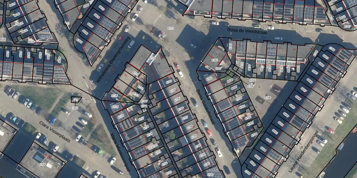Het adres ligt op het perceel LDN01-W-6734, dat zich in de kadastrale gemeente Leiden bevindt. Het perceel is 102 m² groot. Dat is kleiner dan de gemiddelde perceeloppervlakte in Leiden, dat op 704,01 m² ligt. De grootste perceeloppervlakte in de kadastrale gemeente is 51,8 ha. De kleinste oppervlakte bedraagt 0 m². Op het perceel bevinden zich geen andere adressen. De huidige grenzen van het perceel zijn digitaal in de Basisregistratie Kadaster (BRK) geregistreerd op 29-08-2003.
