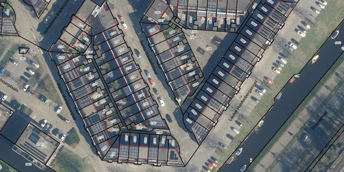Gebruik de zoekbalk of klik op een perceel voor informatie over de adressen binnen dit perceel.