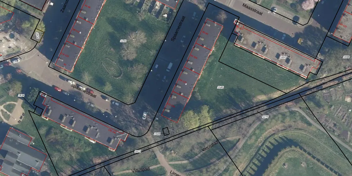 Spaarnestraat 116 is gelegen op kadastraal perceel LDN01Q1545. Deze kadastrale aanduiding is uniek en wordt gebruikt door het Kadaster om eigendomsrechten en andere zakelijke rechten vast te leggen. Het perceel maakt onderdeel uit van de kadastrale gemeente Leiden.