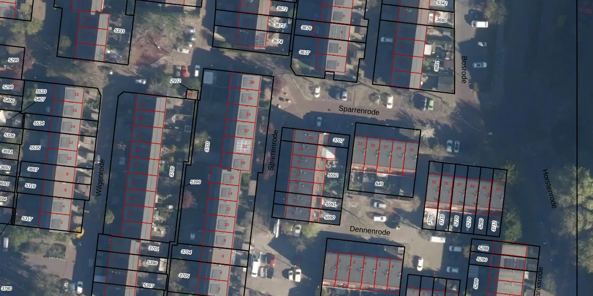 Sparrenrode 19 is gelegen op kadastraal perceel LDN01S5592. Deze kadastrale aanduiding is uniek en wordt gebruikt door het Kadaster om eigendomsrechten en andere zakelijke rechten vast te leggen. Het perceel maakt onderdeel uit van de kadastrale gemeente Leiden.