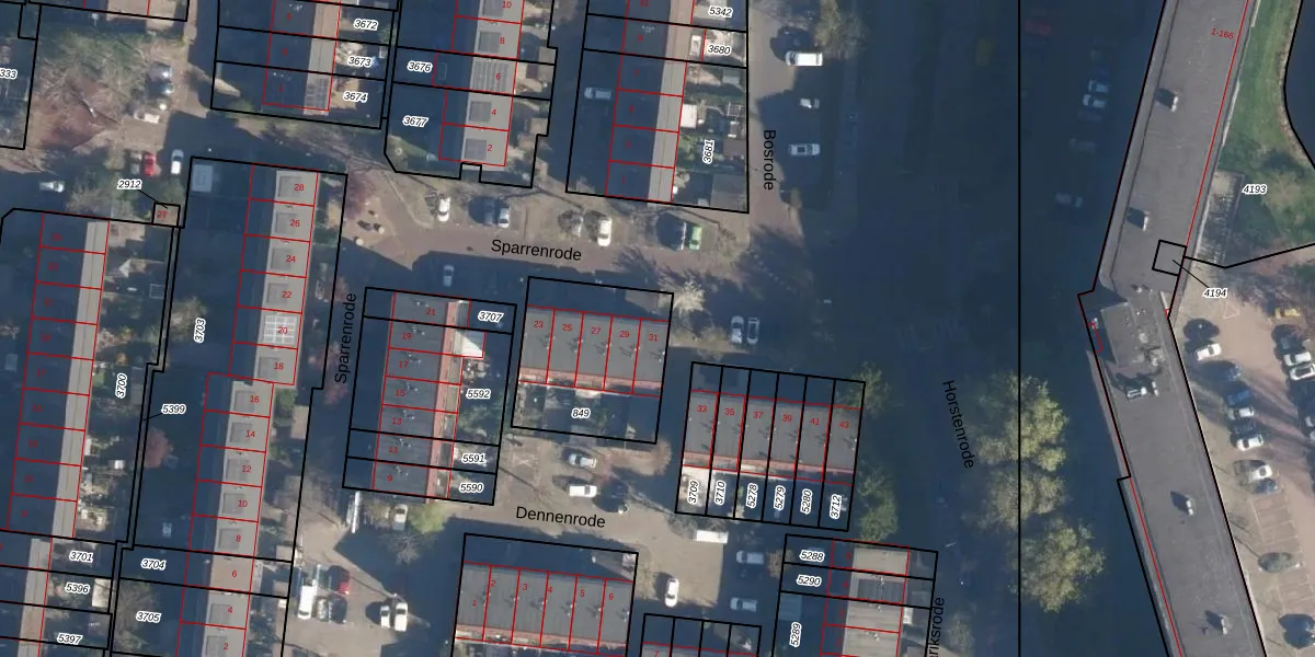 Sparrenrode 31 is gelegen op kadastraal perceel LDN01S849. Deze kadastrale aanduiding is uniek en wordt gebruikt door het Kadaster om eigendomsrechten en andere zakelijke rechten vast te leggen. Het perceel maakt onderdeel uit van de kadastrale gemeente Leiden.