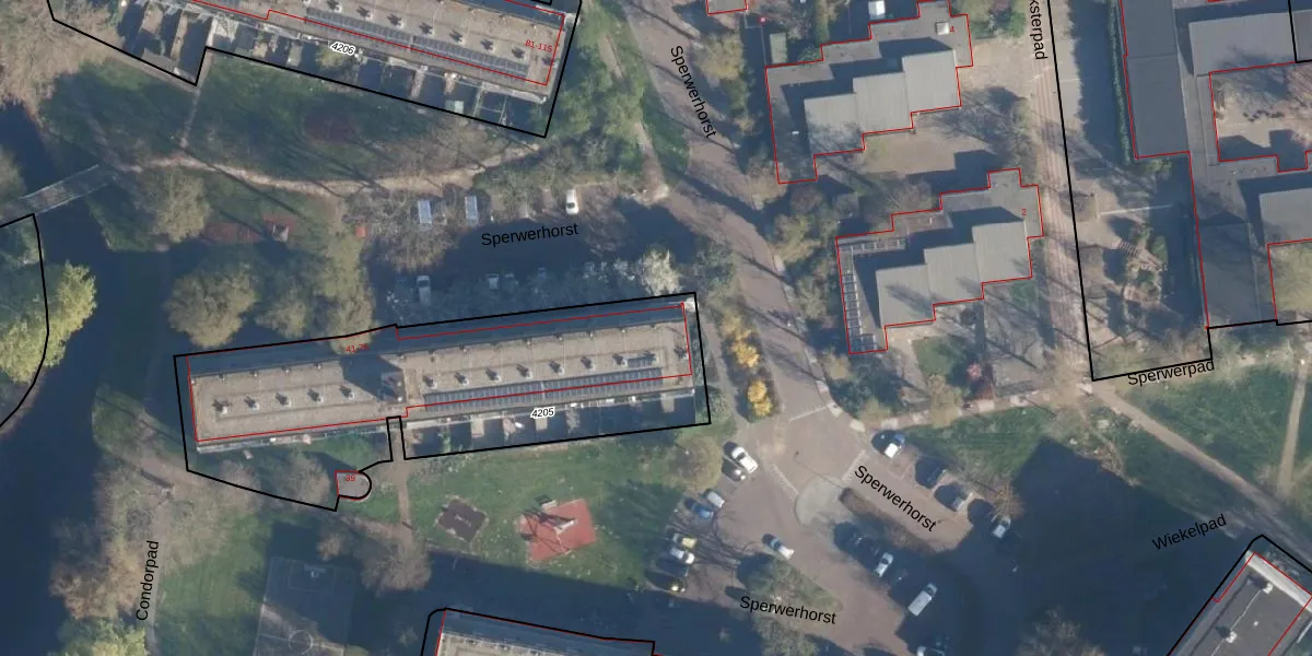 Sperwerhorst 56 is gelegen op kadastraal perceel LDN01S4205. Deze kadastrale aanduiding is uniek en wordt gebruikt door het Kadaster om eigendomsrechten en andere zakelijke rechten vast te leggen. Het perceel maakt onderdeel uit van de kadastrale gemeente Leiden.