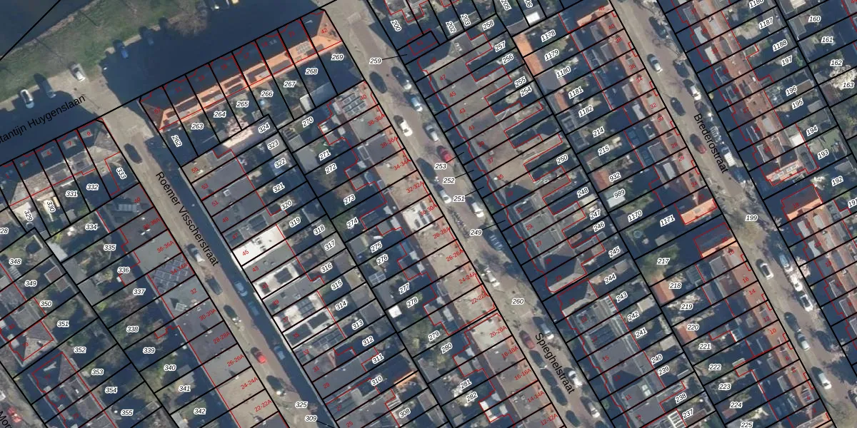 Het perceel waarop Spieghelstraat 30 staat heeft een oppervlakte van 143 m². Dit is een middelgroot perceel. De perceeloppervlakte wordt geregistreerd door het Kadaster. Gedetailleerde informatie over de maten van dit perceel kunt u vinden in het rapport Kadastrale kaart met maatvoering van Spieghelstraat 30.