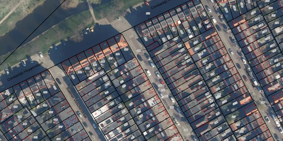 Het perceel waarop het adres ligt is LDN01-R-271. De afkorting 'LDN01' staat voor kadastrale gemeente Leiden. De gemiddelde perceelgrootte in Leiden is 703,94 m². Dit perceel is kleiner: de perceeloppervlakte bedraagt 144 m². De grootste perceeloppervlakte in de kadastrale gemeente is 51,8 ha. De kleinste oppervlakte bedraagt 0 m². Op het perceel zijn 2 adressen aanwezig. In de Basisregistratie Kadaster (BRK) werden de grenzen van het perceel geregistreerd op 19-11-2003.