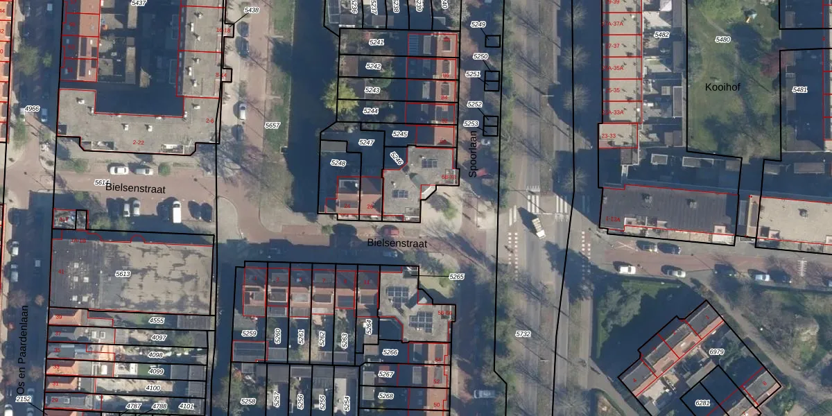 Spoorlaan 68 is gelegen op kadastraal perceel LDN01K5246. Deze kadastrale aanduiding is uniek en wordt gebruikt door het Kadaster om eigendomsrechten en andere zakelijke rechten vast te leggen. Het perceel maakt onderdeel uit van de kadastrale gemeente Leiden.
