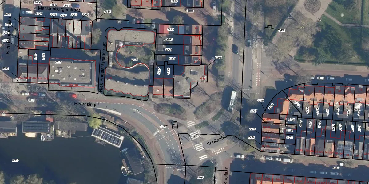 Het adres ligt op het perceel LDN01-K-5295, dat zich in de kadastrale gemeente Leiden bevindt. Het perceel is 263 m² groot. Dat is kleiner dan de gemiddelde perceeloppervlakte in Leiden, dat op 703,94 m² ligt. De grootste perceeloppervlakte in de kadastrale gemeente is 51,8 ha. De kleinste oppervlakte bedraagt 0 m². Op het perceel liggen in totaal 6 adressen. In de Basisregistratie Kadaster (BRK) werden de grenzen van het perceel geregistreerd op 22-08-2003.