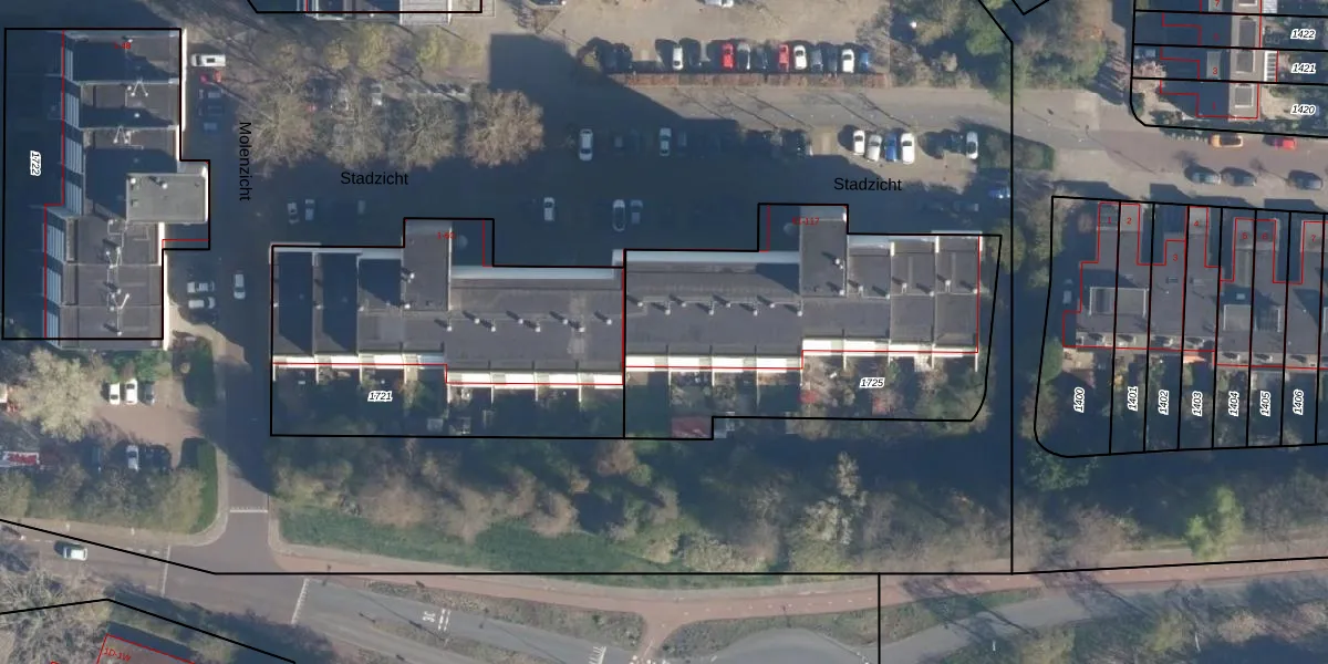 Stadzicht 112 is gelegen op kadastraal perceel LDN01S1725. Deze kadastrale aanduiding is uniek en wordt gebruikt door het Kadaster om eigendomsrechten en andere zakelijke rechten vast te leggen. Het perceel maakt onderdeel uit van de kadastrale gemeente Leiden.