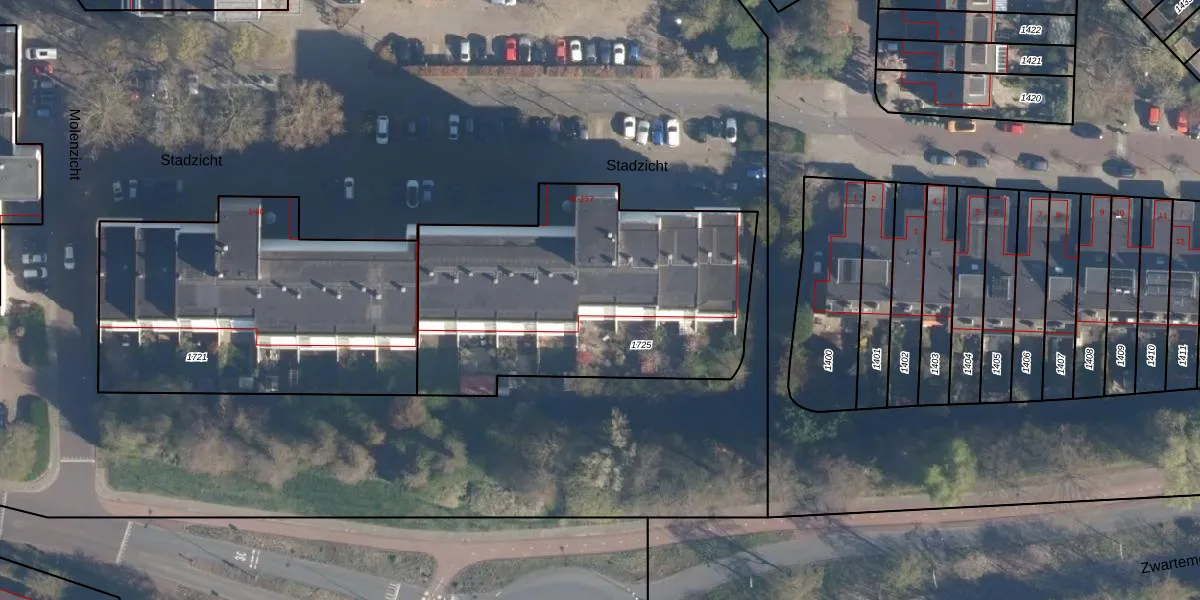 Het perceel waarop Stadzicht 117 staat heeft een oppervlakte van 1590 m². Dit is een zeer groot perceel. De perceeloppervlakte wordt geregistreerd door het Kadaster. Gedetailleerde informatie over de maten van dit perceel kunt u vinden in het rapport Kadastrale kaart met maatvoering van Stadzicht 117.