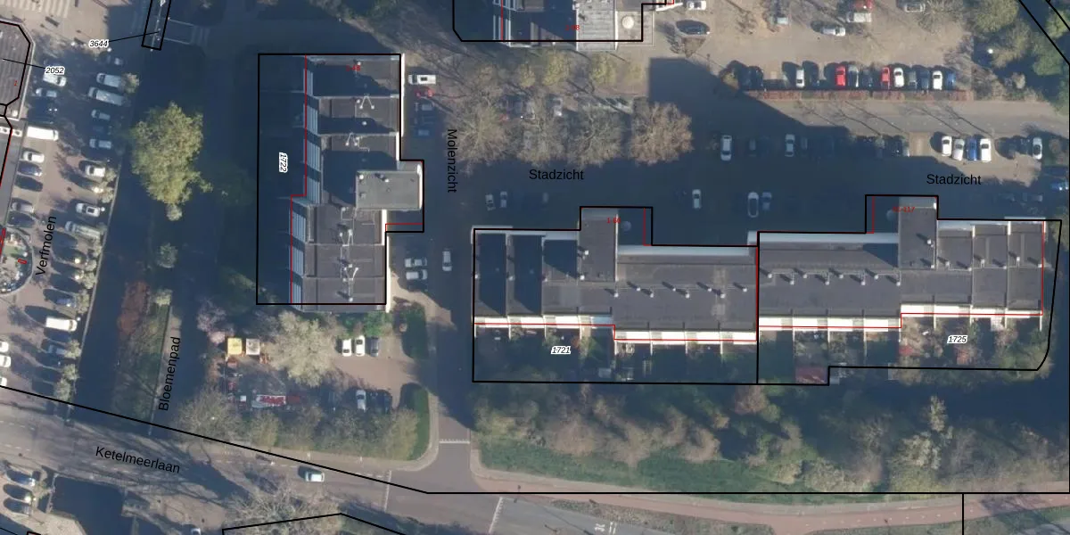 Het perceel waarop Stadzicht 17 staat heeft een oppervlakte van 1525 m². Dit is een zeer groot perceel. De perceeloppervlakte wordt geregistreerd door het Kadaster. Gedetailleerde informatie over de maten van dit perceel kunt u vinden in het rapport Kadastrale kaart met maatvoering van Stadzicht 17.
