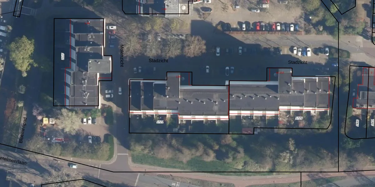 Het perceel waarop Stadzicht 20 staat heeft een oppervlakte van 1525 m². Dit is een zeer groot perceel. De perceeloppervlakte wordt geregistreerd door het Kadaster. Gedetailleerde informatie over de maten van dit perceel kunt u vinden in het rapport Kadastrale kaart met maatvoering van Stadzicht 20.
