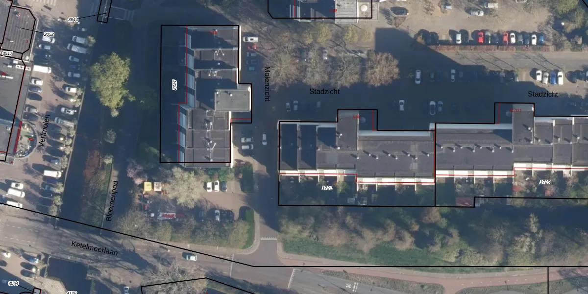 Het perceel waarop Stadzicht 24 staat heeft een oppervlakte van 1525 m². Dit is een zeer groot perceel. De perceeloppervlakte wordt geregistreerd door het Kadaster. Gedetailleerde informatie over de maten van dit perceel kunt u vinden in het rapport Kadastrale kaart met maatvoering van Stadzicht 24.