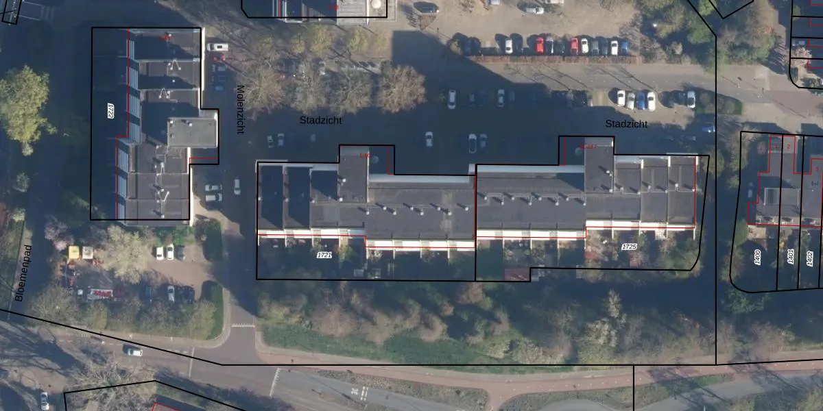 Het perceel waarop Stadzicht 37 staat heeft een oppervlakte van 1525 m². Dit is een zeer groot perceel. De perceeloppervlakte wordt geregistreerd door het Kadaster. Gedetailleerde informatie over de maten van dit perceel kunt u vinden in het rapport Kadastrale kaart met maatvoering van Stadzicht 37.