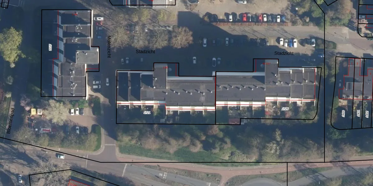 Het perceel waarop Stadzicht 45 staat heeft een oppervlakte van 1525 m². Dit is een zeer groot perceel. De perceeloppervlakte wordt geregistreerd door het Kadaster. Gedetailleerde informatie over de maten van dit perceel kunt u vinden in het rapport Kadastrale kaart met maatvoering van Stadzicht 45.