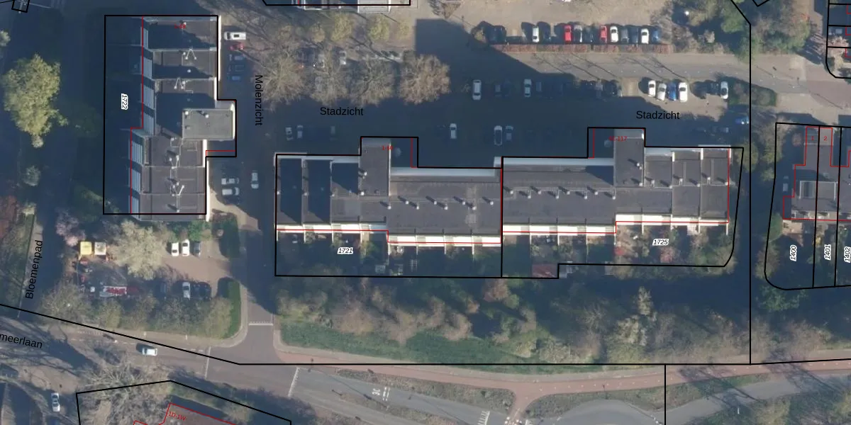 Het perceel waarop Stadzicht 52 staat heeft een oppervlakte van 1525 m². Dit is een zeer groot perceel. De perceeloppervlakte wordt geregistreerd door het Kadaster. Gedetailleerde informatie over de maten van dit perceel kunt u vinden in het rapport Kadastrale kaart met maatvoering van Stadzicht 52.