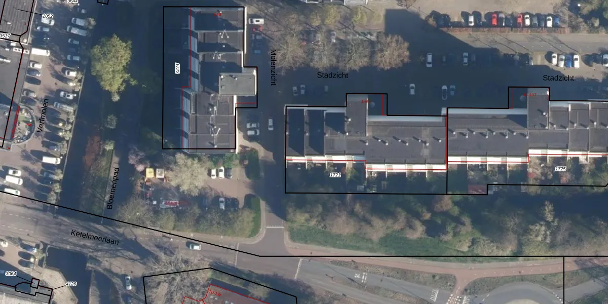 Het perceel waarop Stadzicht 55 staat heeft een oppervlakte van 1525 m². Dit is een zeer groot perceel. De perceeloppervlakte wordt geregistreerd door het Kadaster. Gedetailleerde informatie over de maten van dit perceel kunt u vinden in het rapport Kadastrale kaart met maatvoering van Stadzicht 55.