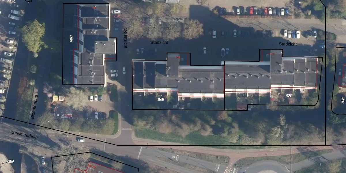 Het perceel waarop Stadzicht 57 staat heeft een oppervlakte van 1525 m². Dit is een zeer groot perceel. De perceeloppervlakte wordt geregistreerd door het Kadaster. Gedetailleerde informatie over de maten van dit perceel kunt u vinden in het rapport Kadastrale kaart met maatvoering van Stadzicht 57.