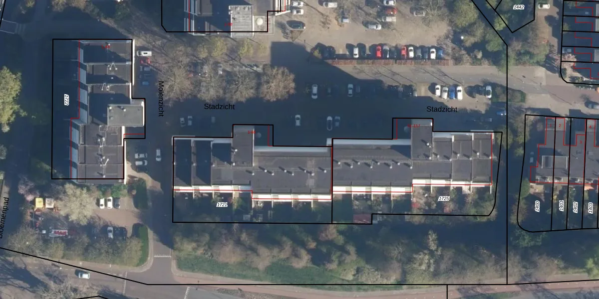 Het perceel waarop Stadzicht 6 staat heeft een oppervlakte van 1525 m². Dit is een zeer groot perceel. De perceeloppervlakte wordt geregistreerd door het Kadaster. Gedetailleerde informatie over de maten van dit perceel kunt u vinden in het rapport Kadastrale kaart met maatvoering van Stadzicht 6.
