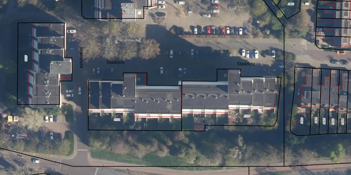 Het perceel waarop Stadzicht 7 staat heeft een oppervlakte van 1525 m². Dit is een zeer groot perceel. De perceeloppervlakte wordt geregistreerd door het Kadaster. Gedetailleerde informatie over de maten van dit perceel kunt u vinden in het rapport Kadastrale kaart met maatvoering van Stadzicht 7.