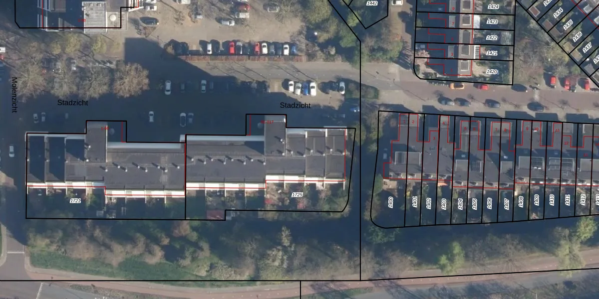 Het perceel waarop Stadzicht 83 staat heeft een oppervlakte van 1590 m². Dit is een zeer groot perceel. De perceeloppervlakte wordt geregistreerd door het Kadaster. Gedetailleerde informatie over de maten van dit perceel kunt u vinden in het rapport Kadastrale kaart met maatvoering van Stadzicht 83.