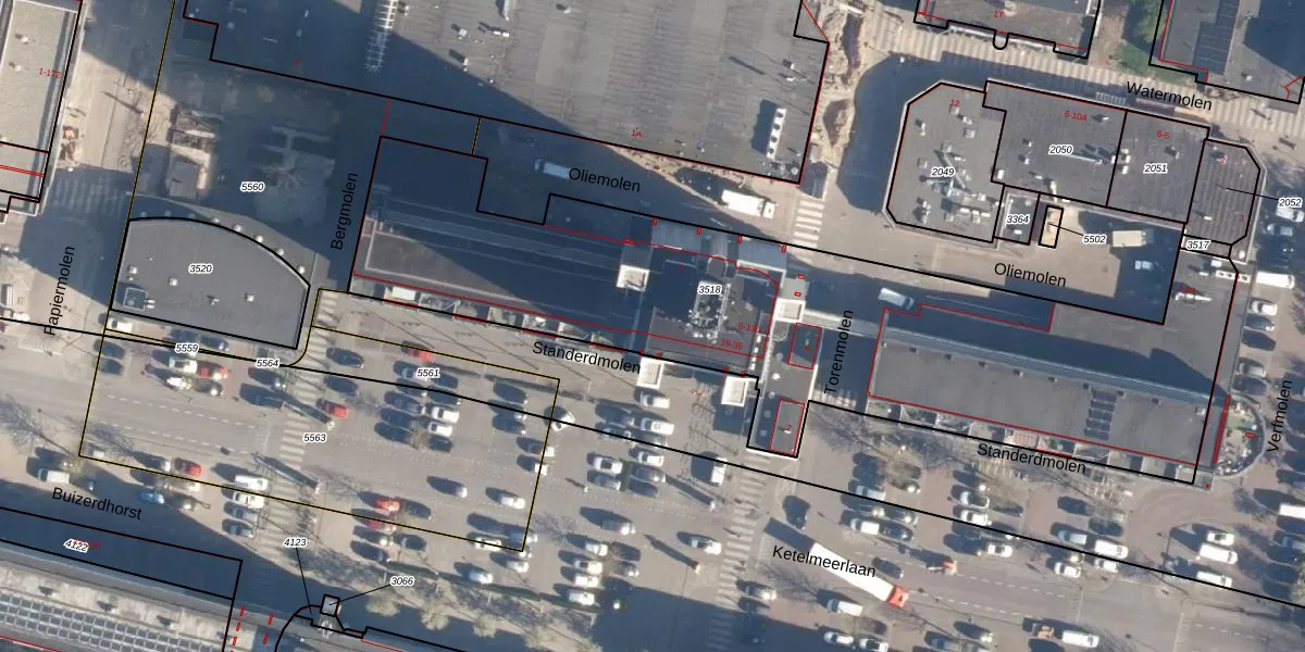 Het perceel waarop Standerdmolen 23 staat heeft een oppervlakte van 3116 m². Dit is een zeer groot perceel. De perceeloppervlakte wordt geregistreerd door het Kadaster. Gedetailleerde informatie over de maten van dit perceel kunt u vinden in het rapport Kadastrale kaart met maatvoering van Standerdmolen 23.