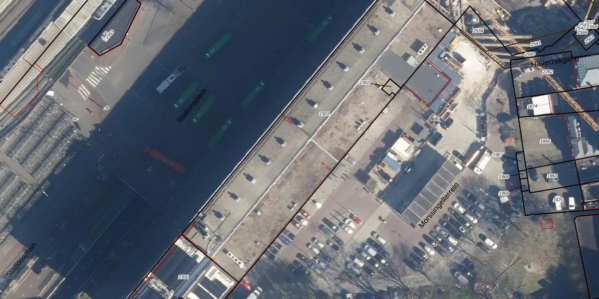 Het perceel waarop Stationsplein 118 staat heeft een oppervlakte van 2791 m². Dit is een zeer groot perceel. De perceeloppervlakte wordt geregistreerd door het Kadaster. Gedetailleerde informatie over de maten van dit perceel kunt u vinden in het rapport Kadastrale kaart met maatvoering van Stationsplein 118.