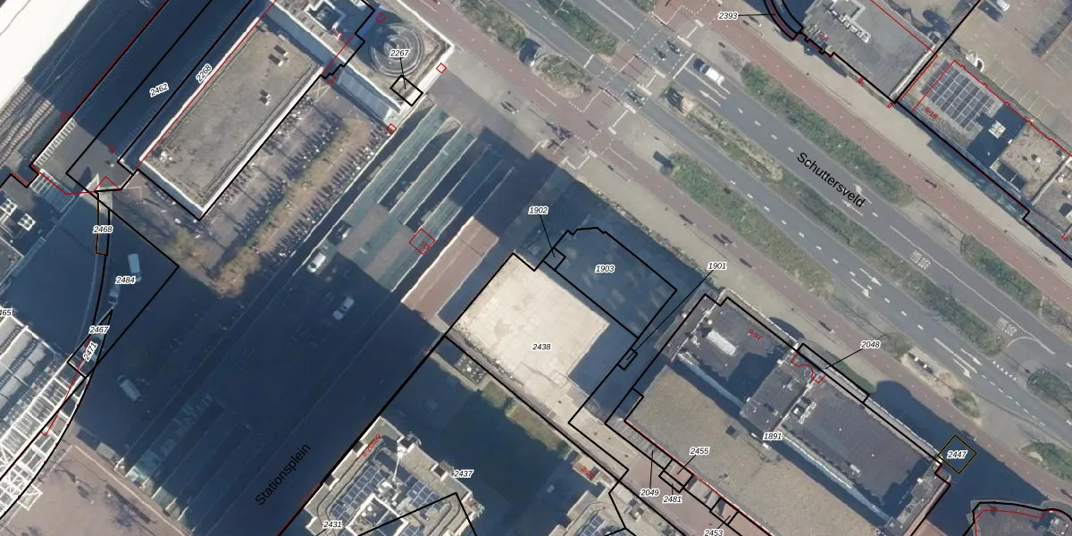 Het perceel waarop Stationsplein 2-E staat heeft een oppervlakte van 13,7 ha. Dit is een zeer groot perceel. De perceeloppervlakte wordt geregistreerd door het Kadaster. Gedetailleerde informatie over de maten van dit perceel kunt u vinden in het rapport Kadastrale kaart met maatvoering van Stationsplein 2-E.