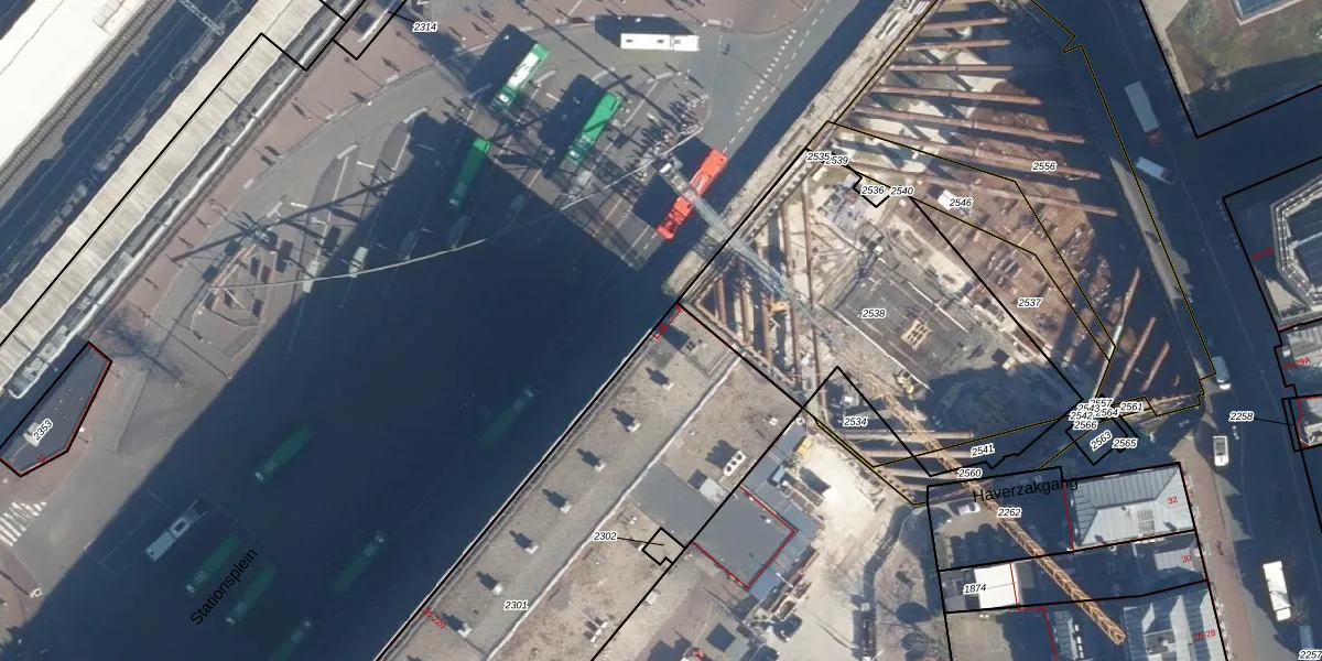 Het perceel waarop Stationsplein 212 staat heeft een oppervlakte van 2791 m². Dit is een zeer groot perceel. De perceeloppervlakte wordt geregistreerd door het Kadaster. Gedetailleerde informatie over de maten van dit perceel kunt u vinden in het rapport Kadastrale kaart met maatvoering van Stationsplein 212.