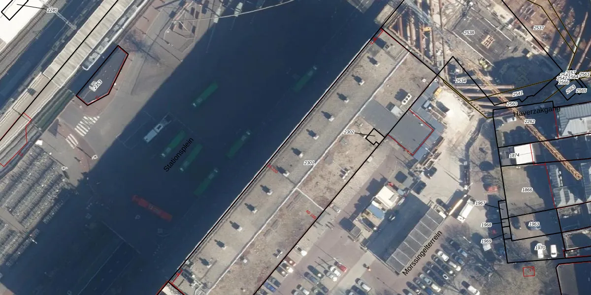 Het perceel waarop Stationsplein 36 staat heeft een oppervlakte van 2791 m². Dit is een zeer groot perceel. De perceeloppervlakte wordt geregistreerd door het Kadaster. Gedetailleerde informatie over de maten van dit perceel kunt u vinden in het rapport Kadastrale kaart met maatvoering van Stationsplein 36.