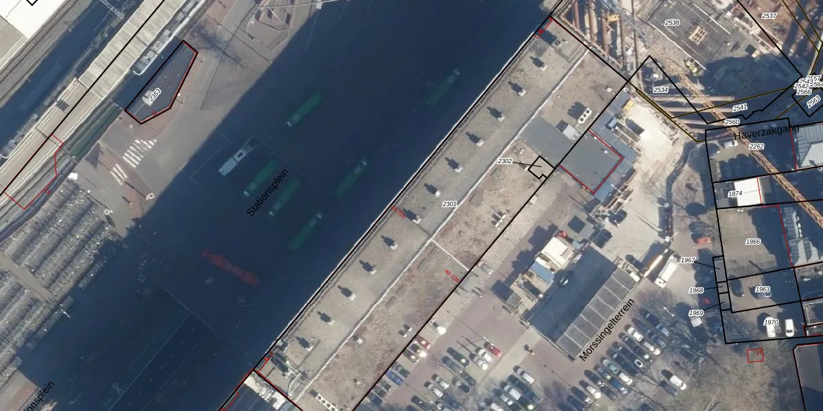 Het perceel waarop Stationsplein 38 staat heeft een oppervlakte van 2791 m². Dit is een zeer groot perceel. De perceeloppervlakte wordt geregistreerd door het Kadaster. Gedetailleerde informatie over de maten van dit perceel kunt u vinden in het rapport Kadastrale kaart met maatvoering van Stationsplein 38.