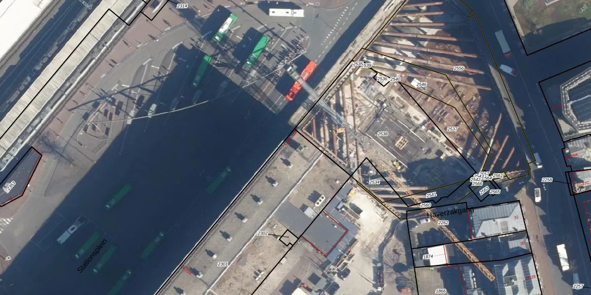 Het perceel waarop Stationsplein 52 staat heeft een oppervlakte van 2791 m². Dit is een zeer groot perceel. De perceeloppervlakte wordt geregistreerd door het Kadaster. Gedetailleerde informatie over de maten van dit perceel kunt u vinden in het rapport Kadastrale kaart met maatvoering van Stationsplein 52.