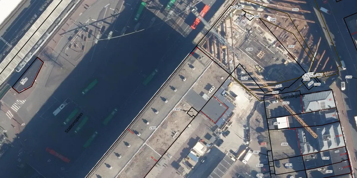 Het perceel waarop Stationsplein 56 staat heeft een oppervlakte van 2791 m². Dit is een zeer groot perceel. De perceeloppervlakte wordt geregistreerd door het Kadaster. Gedetailleerde informatie over de maten van dit perceel kunt u vinden in het rapport Kadastrale kaart met maatvoering van Stationsplein 56.