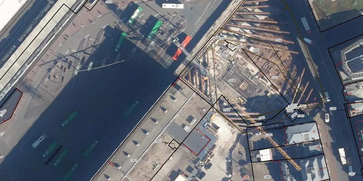 Het perceel waarop Stationsplein 78 staat heeft een oppervlakte van 2791 m². Dit is een zeer groot perceel. De perceeloppervlakte wordt geregistreerd door het Kadaster. Gedetailleerde informatie over de maten van dit perceel kunt u vinden in het rapport Kadastrale kaart met maatvoering van Stationsplein 78.