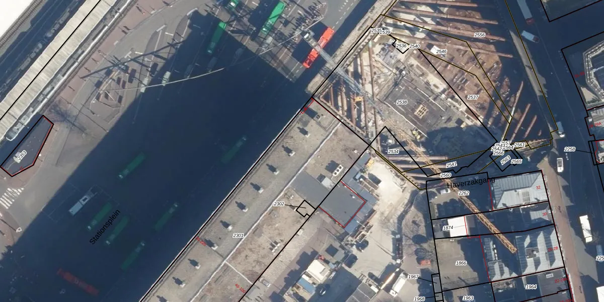 Het perceel waarop Stationsplein 80 staat heeft een oppervlakte van 2791 m². Dit is een zeer groot perceel. De perceeloppervlakte wordt geregistreerd door het Kadaster. Gedetailleerde informatie over de maten van dit perceel kunt u vinden in het rapport Kadastrale kaart met maatvoering van Stationsplein 80.