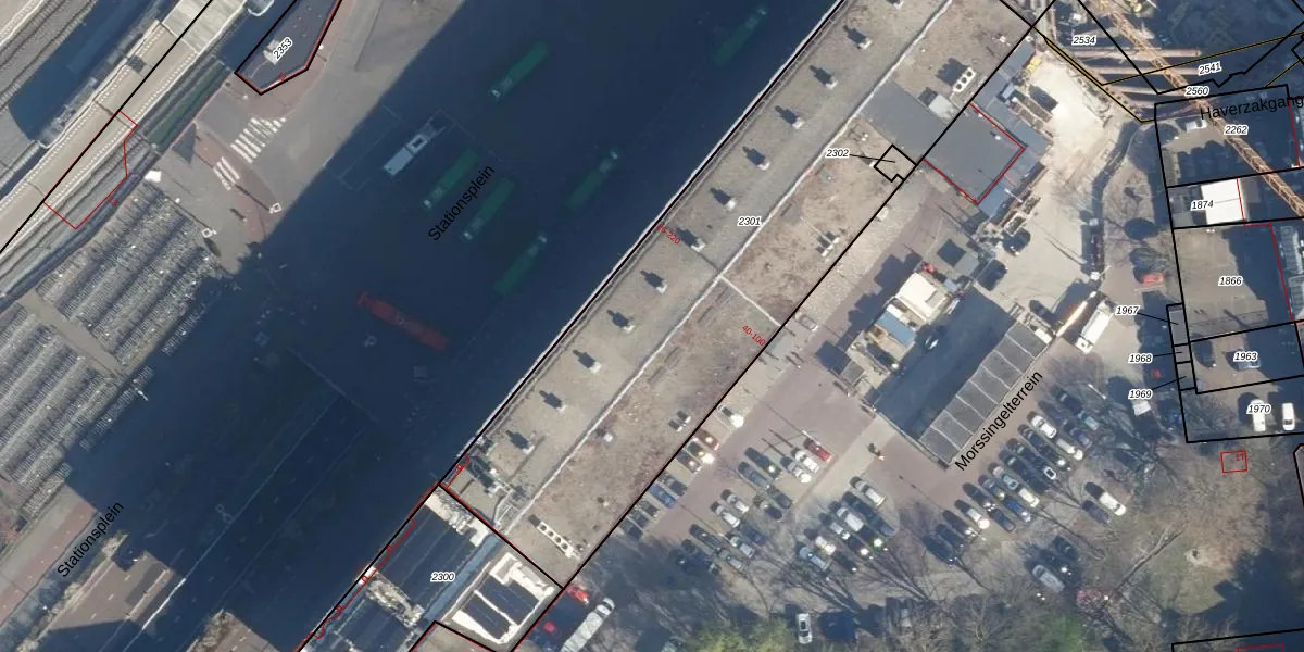 Het perceel waarop Stationsplein 94 staat heeft een oppervlakte van 2791 m². Dit is een zeer groot perceel. De perceeloppervlakte wordt geregistreerd door het Kadaster. Gedetailleerde informatie over de maten van dit perceel kunt u vinden in het rapport Kadastrale kaart met maatvoering van Stationsplein 94.