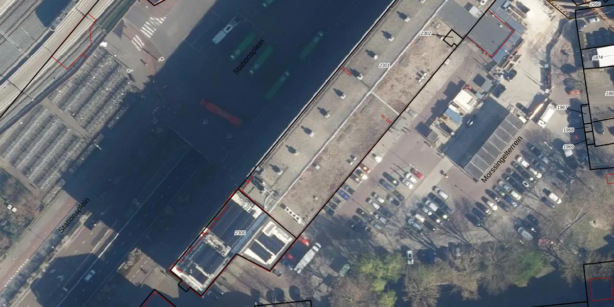 Het perceel waarop Stationsplein 98 staat heeft een oppervlakte van 2791 m². Dit is een zeer groot perceel. De perceeloppervlakte wordt geregistreerd door het Kadaster. Gedetailleerde informatie over de maten van dit perceel kunt u vinden in het rapport Kadastrale kaart met maatvoering van Stationsplein 98.