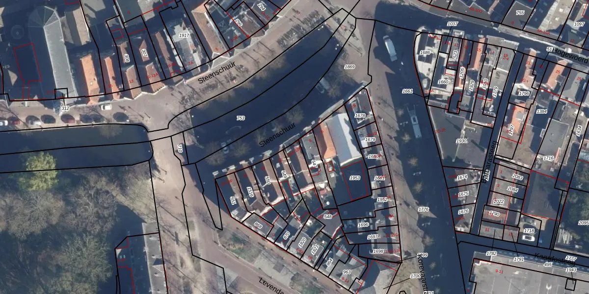 Steenschuur 10-A is gelegen op kadastraal perceel LDN01D548. Deze kadastrale aanduiding is uniek en wordt gebruikt door het Kadaster om eigendomsrechten en andere zakelijke rechten vast te leggen. Het perceel maakt onderdeel uit van de kadastrale gemeente Leiden.