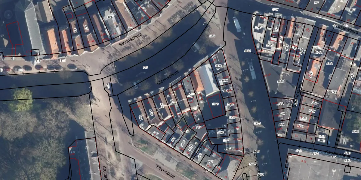 Steenschuur 10-C is gelegen op kadastraal perceel LDN01D548. Deze kadastrale aanduiding is uniek en wordt gebruikt door het Kadaster om eigendomsrechten en andere zakelijke rechten vast te leggen. Het perceel maakt onderdeel uit van de kadastrale gemeente Leiden.